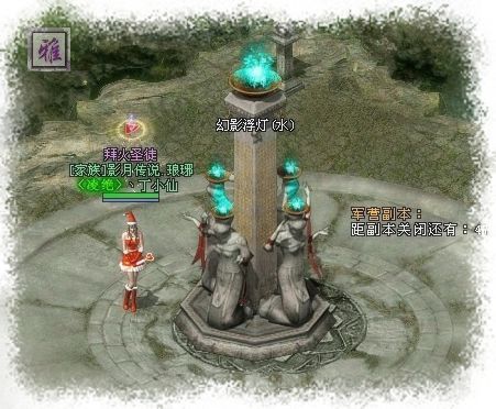 天绝峰平台四角及下边五个传送阵需要队员分开进入,杀死护法长老,开启幻影浮灯。从金开始按相克顺序开启,金——木——土——水——火顺序错误就要从金灯重新开启。