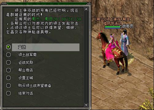 当帮会需要攻打新手村或新领土时,先到各大城市的“领土战官员”处对攻打目标进行宣战,才能获得对这些领土的征战权。