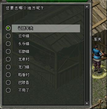 帮主通过各城市新手村,车夫选择“征战车夫”确定征战地点后,其他帮会人员可以通过“征战车夫”传送到该地点。