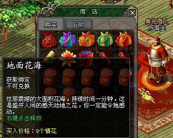 若是你觉得礼包中的道具还不足以表达你的情意,想要制造更奢华浪漫的气氛,还可以在万有全处使用情花购买礼花、礼炮、誓言等道具。