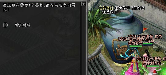 在合江园的四个角落分别有白虎、青龙、玄武、朱雀四个酒坛。收集材料进行酿酒,保护酒坛不受酒鬼袭击。需要平均分配每个成员的职责,按照提示收集材料的、点燃火种、并保护酒坛,品尝美酒可为自身增加有益状态,提升攻击力!需要大家的配合方可通关。 |