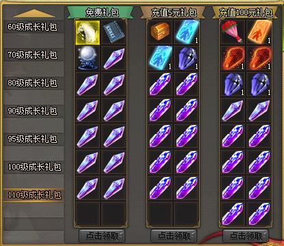 从新手到大侠,“新手升级礼包”伴你闯江湖,从10级至110级,每个等级阶段均有惊喜,精炼卷轴、强化优惠符、绑金绑银、玄晶、大白驹丸、祈福令牌、背包、精美外装、声望令牌等数十种道具总共价值12888的奖励都是你的。而且每获得1次免费升级礼包的机会还将获得1次抽奖机会,各种惊喜大奖等你拿!
