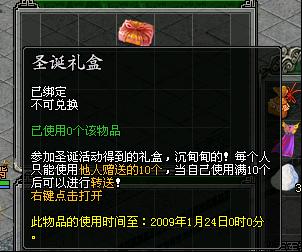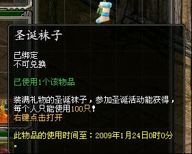 2.圣诞礼盒、圣诞袜子均为绑定物品,有效期至2009年1月24日;