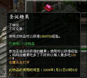 使用圣诞糖果可以获得高额经验,不过糖吃多了可对身体不好哦,活动期间每个角色最多只可以使用100颗圣诞糖果。