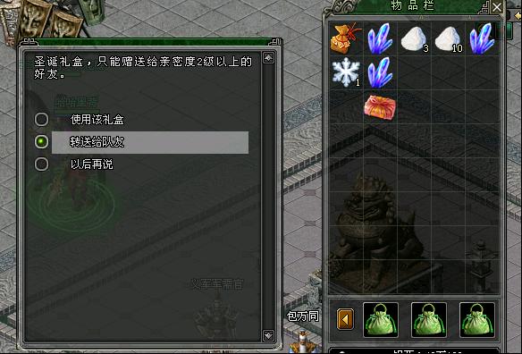 4.圣诞礼盒虽为绑定物品,不能丢弃,但是只能送给其他朋友使用,你可以打开朋友送你的礼盒获得各种圣诞大礼。